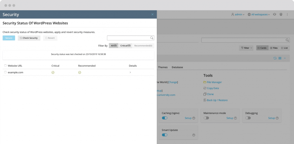 Detecte y resuelva automáticamente problemas con los servicios de Plesk utilizando Repair Kit, una potente herramienta de reparación automática. Consulte la lista de procesos que se ejecutan en el servidor. Filtra los procesos relacionados con los dominios. Mata procesos. Analice el uso total de RAM, CPU y disco de todos los procesos que se ejecutan en el servidor o incluso de procesos individuales.